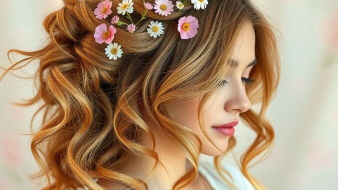 - dla dodania charakteru, udekoruj fryzurę kwiatami lub innymi ozdobami.