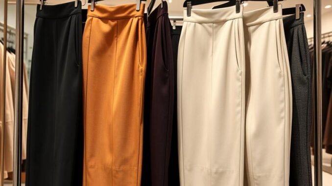 - Spodnie z wysokim stanem: Idealnie eksponują talię, co jest korzystne dla figury gruszki. Można je łączyć z dopasowanymi bluzkami, aby podkreślić smukłość w talii.